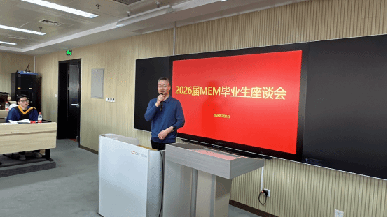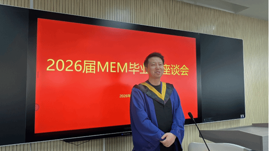 MEM 校友会副会长戈耀宗、张庆分别分享了各自的职场经验,他们以 “校友生态共筑发展” 为例,鼓励学弟学妹依托校友网络拓展资源。