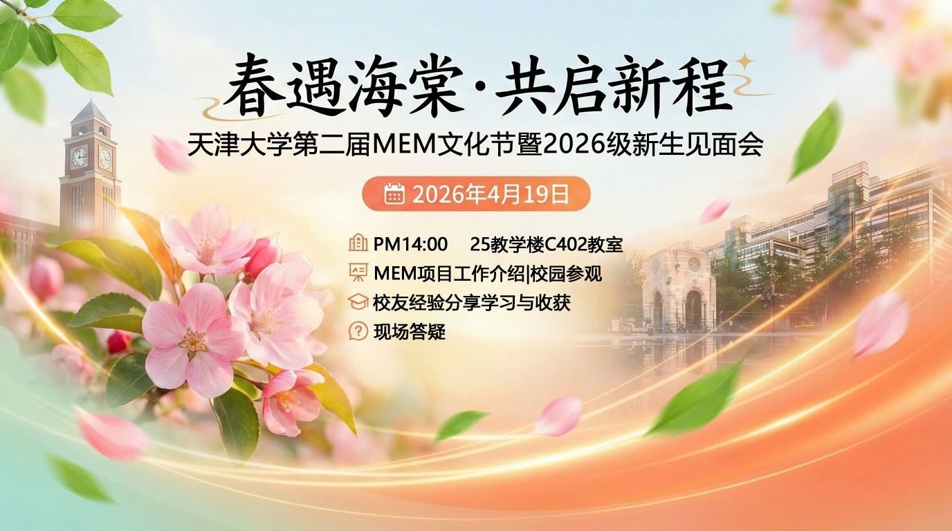4 月 19 日,天津大学第二届 MEM 文化节暨2026级新生见面会顺利举行。活动以 “春遇海棠・共启新程” 为主题,助力 MEM 新生快速融入校园、明晰学业规划、凝聚同窗情谊。
